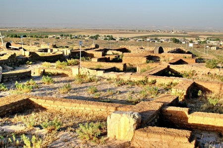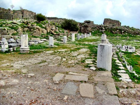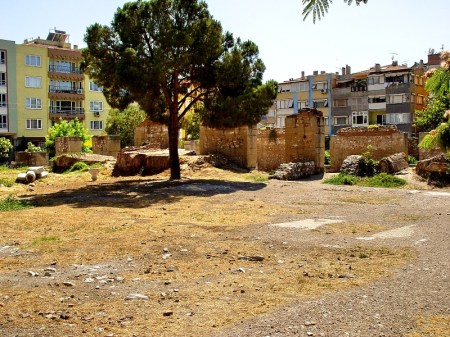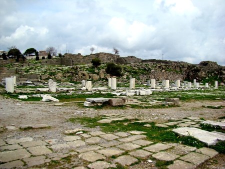 Our photo below shows the site with Tmolus to our back. The brown brick building at right foreground is a church building constructed about the 5th century A.D.