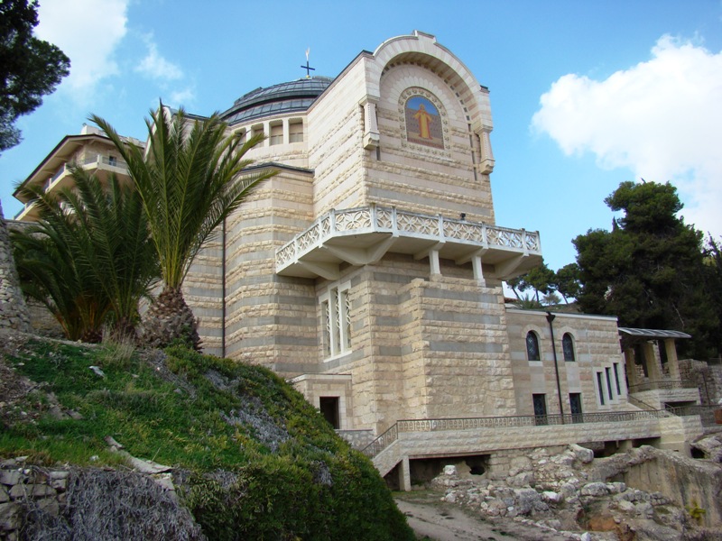 The Church of St. Peter in Gallicantu is one of the proposed sites of the house High Priest Caiaphas, High Priest who presided at Jesus’ “trial” (Matt. 26:57-68). The word “Gallicantu” means cock crowing, and is a reference to Peter’s denial as he sat outside in the courtyard of the High Priest (Matt. 26:69-75). It was on this occasion that Peter denied the Lord three times, “And immediately a rooster crowed. And Peter remembered the word of Jesus who had said to him, ‘Before the rooster crows, you will deny Me three times.’ Then he went out and wept bitterly.”