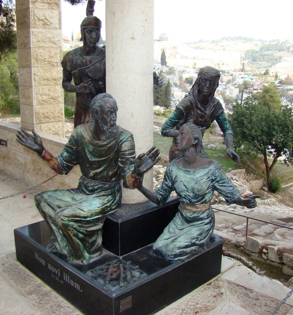 This is a representation of Peter, denying his discipleship of Jesus to a maid. Behind, as soldier stands. What a warning–how easy it is to let down one’s guard and do the unthinkable. Later Peter would warn others about our Adversary, the Devil (1 Pet. 5:8).