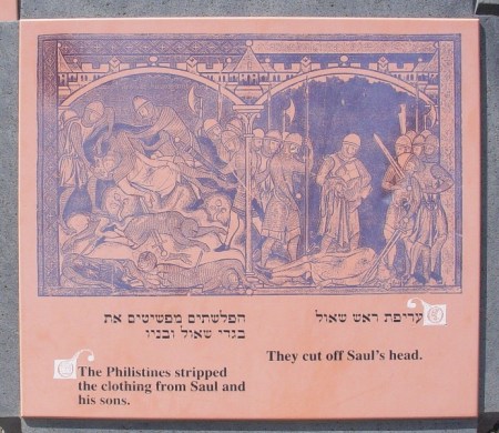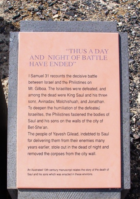 There were some interesting signs on the top of the tel that commemorate Saul’s death at nearby Mt. Gilboa, and the fastening of his body to the walls of Beth Shean (1 Sam. 31).