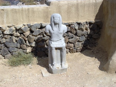 This statue of Ramesses III (replica) marked the Egyptian victory over the “sea peoples” who invaded the land in the 12 century BC. The statue was made locally, in Egyptian monumental style. Original is in the Israel Museum.