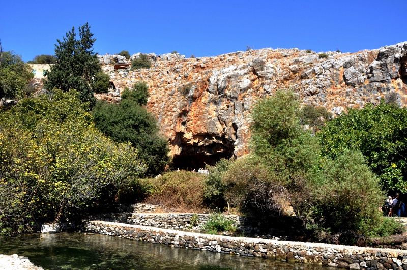 Caesarea Philippi. Grotto of Pan (center), and Banias River. Photo by Leon Mauldin.