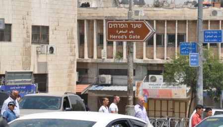 Sign pointing to Herod’s Gate. Photo by Leon Mauldin.