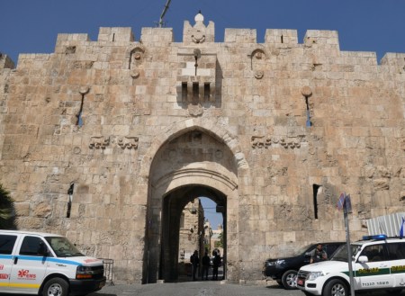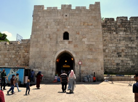 The Damascus Gate is located on the north side of Jerusalem, so named because this would be the direction going out of Jerusalem to Damascus, ca. 150 miles NNW. The Jews call this gate the Shechem Gate, and the Arabs call it Bab el-Amud.