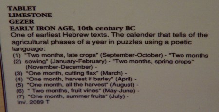 By the way, the Gezer Calendar in our photo is a school-boy’s exercise in learning the months of the year, associated with agricultural events.