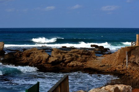 Wave action at Caesarea, on the south side of the Herodian Palace. Photo ©Leon Mauldin.