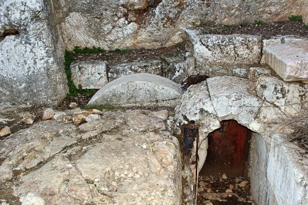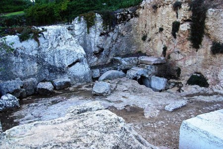 King Herod the Great was buried at the Herodium, but according to Josephus some of his family members were buried in Jerusalem. This tomb has been identified as Herod’s family tomb. BTW, note the rolling stone at center.