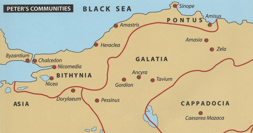 Christians in five Roman districts are addressed in Peter’s letter. The starting point was Pontus.