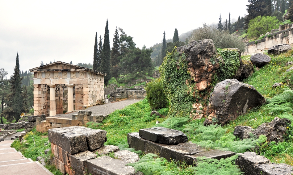 Delphi of course is “home of the famous oracle of Delphi, known as the Pythia, and the Temple of Apollo, where the oracle presided” (Fant, Clyde E.; Reddish, Mitchell G.. A Guide to Biblical Sites in Greece and Turkey, Kindle Locations 1180-1181).