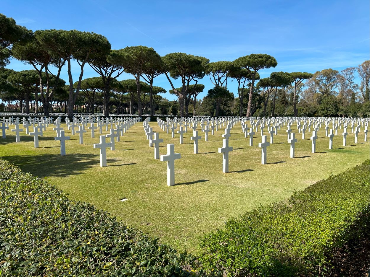 The cemetery is located about 38 miles south of Rome.