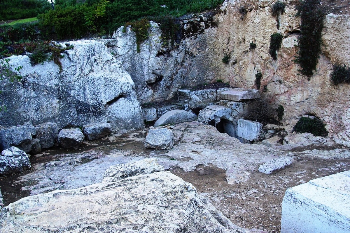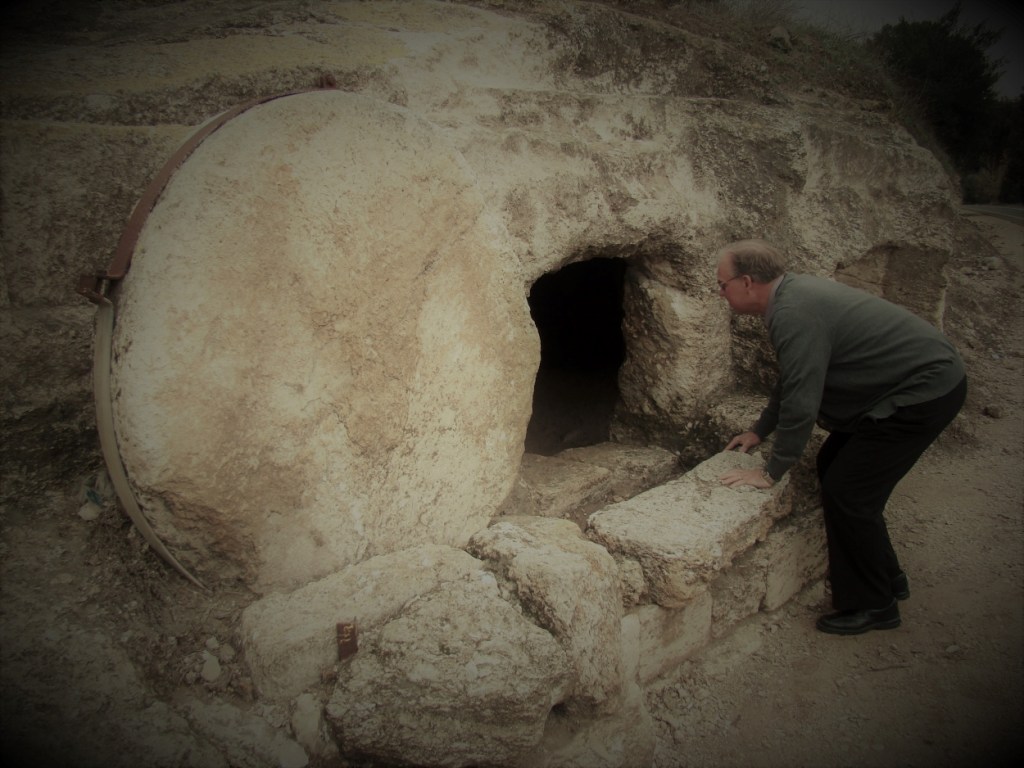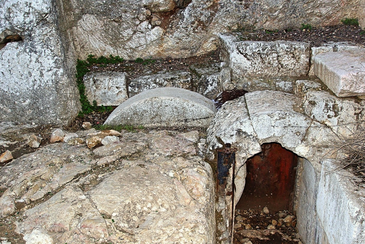 This tomb was discovered during road construction. It so well illustrates the biblical texts that narrate the burial of Jesus. Joseph of Arimathea had a new tomb (one which had not been previously used, John 19:38-42). Assisted by Nicodemus, Joseph wrapped Jesus’ body in a clean linen cloth, “and laid it in his new tomb which he had hewn out of the rock; and he rolled a large stone against the door of the tomb, and departed” (Mt. 27:59-60). The tomb in our photo was hewn out of the rock, and you can see the large stone positioned to the left of the opening.